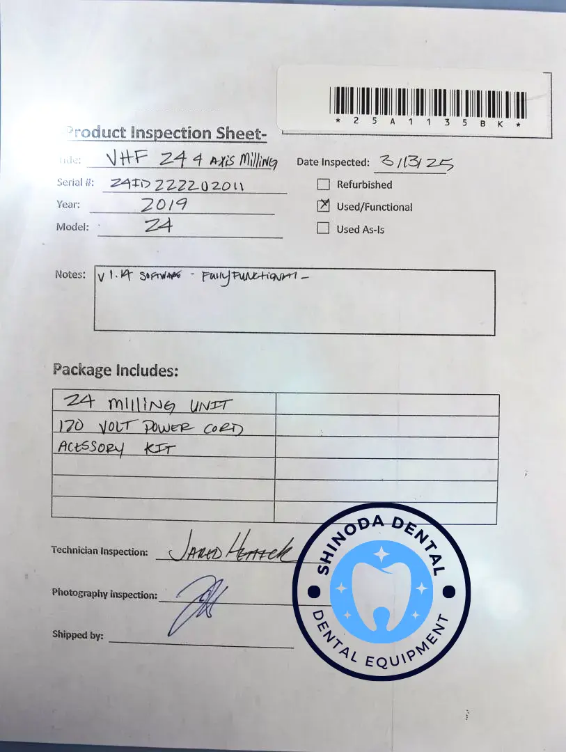 Delivery package included | 5 × tool magazines (in the drawer) incl. accessories · power cord · Ethernet network cable (type: straight) · spindle service set · blank holder service set · measuring pin · drill for tool positions (2.8 mm) · calibration set: 1 micrometer, 5 blanks for the production of test and calibration bodies · cleaning set · spare wiper for inspection window · filter service set · printed operating instructions · carrying aid for the transport of the machine · tools for user-replaceable wear parts, Monitor, keyboard, and mouse. Universal CEREC style block holder, FREE Clinux CAD software, 2 full days of immersive training for your milling machine, including a professional factory-trained installer, Tool set starter edition for VHF z4 27 tools |